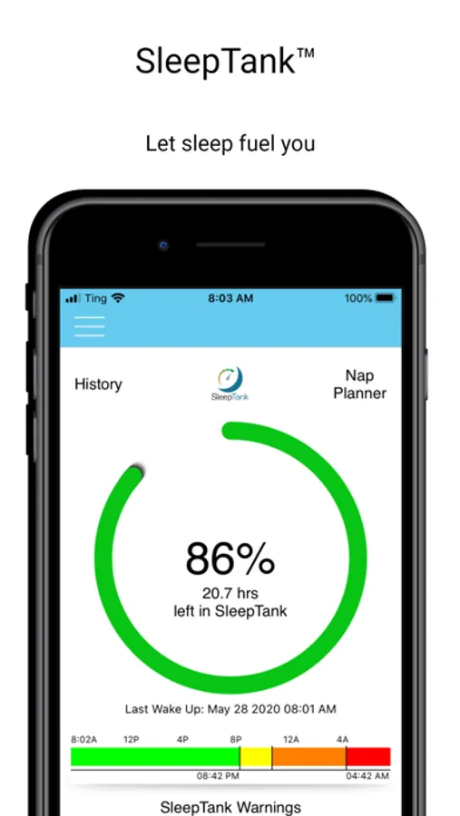 SleepTank™ allows you to monitor how sleep fuels your alertness.