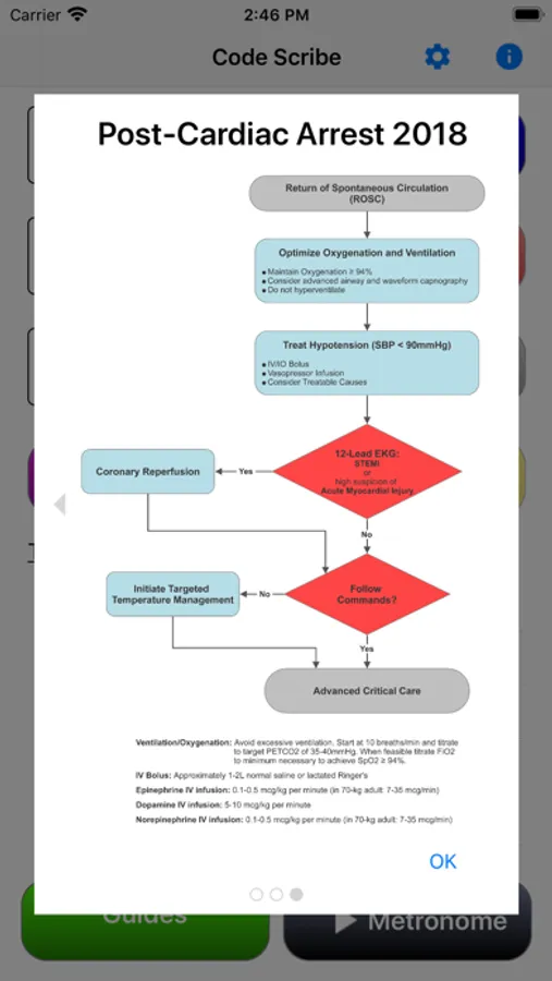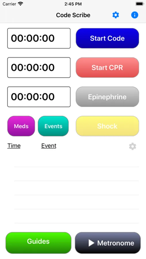 An app designed to help run a code blue as a team leader or as a logger. Timers display time between CPR cycles and medications. Log times of medication administered and other events during a code. Use this app to help manage and document codes more effectively.