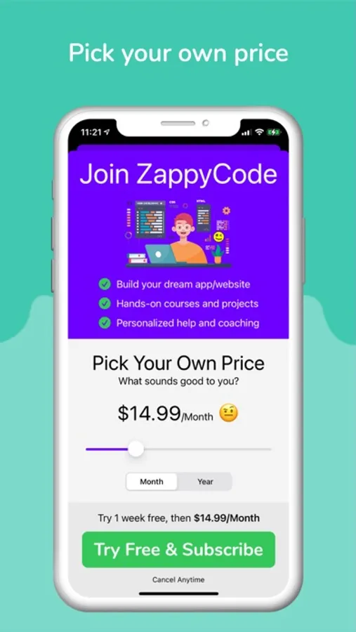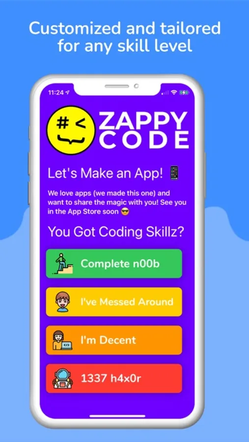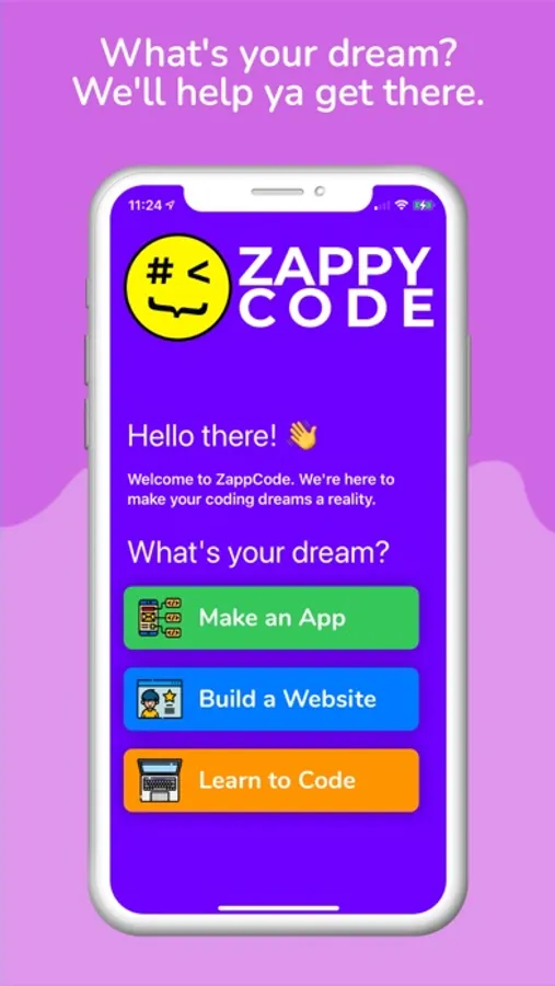 ZappyCode! The fun way to learn code :D Here in the app you can take all our courses and learn various skills like how to make apps and websites! You can also learn several programming languages! If you've ever felt learning to code was boring, you need to give us a try.
