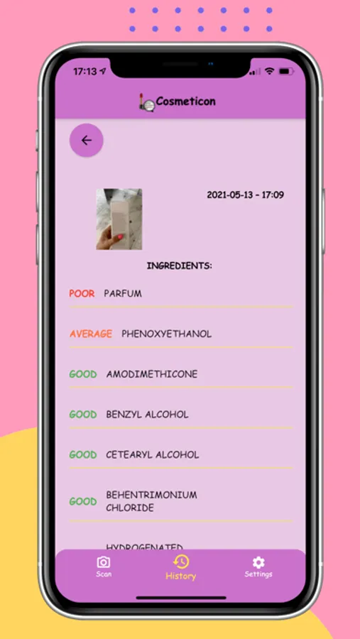 - Upload photo of cosmetics ingredients and you will receive report of ingredients and information about each one
