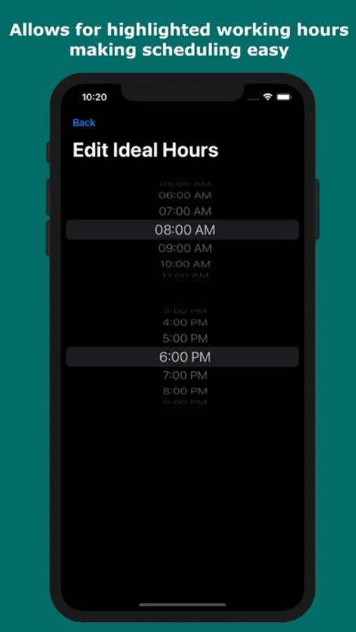 Allows for working time highlighting, making time slot selection much easier
