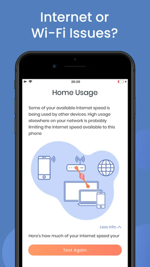 Use it in self-test mode or as directed by your customer service agent, the app will check your home network, wi-fi and Internet connection.