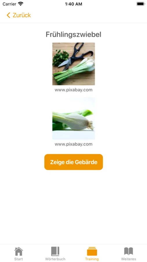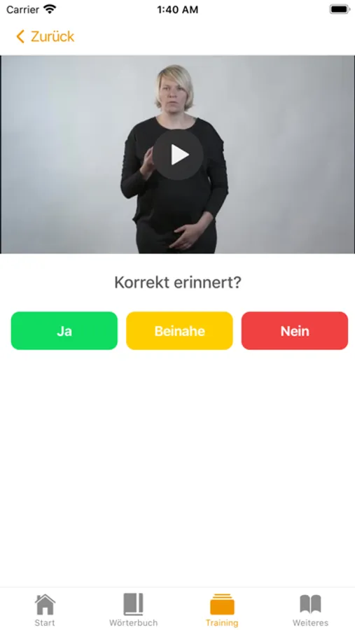 Trainieren Sie Wörter und Gebärden. Betrachten Sie sie schritlich oder in Gebärdensprache und lernen Sie die Übersetzung.