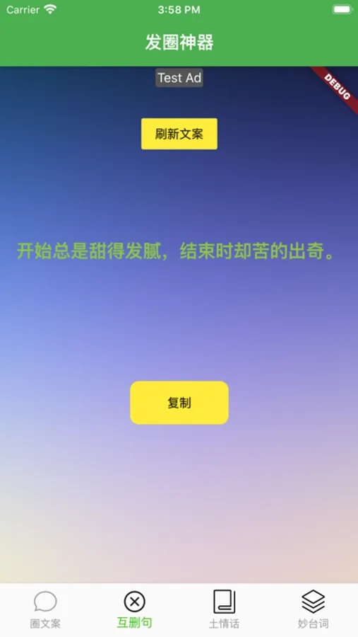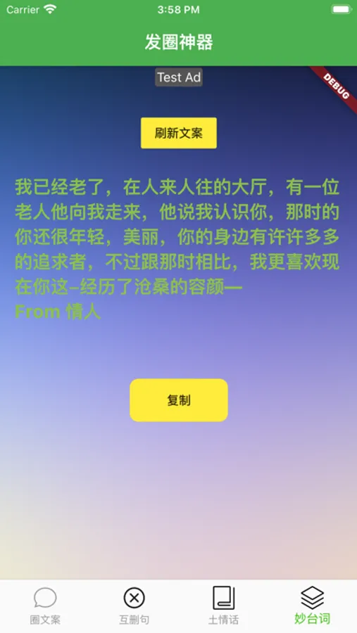 最好的朋友圈文案神器,可以随时随地轻松获取朋友圈各类文案,一键复制使用.