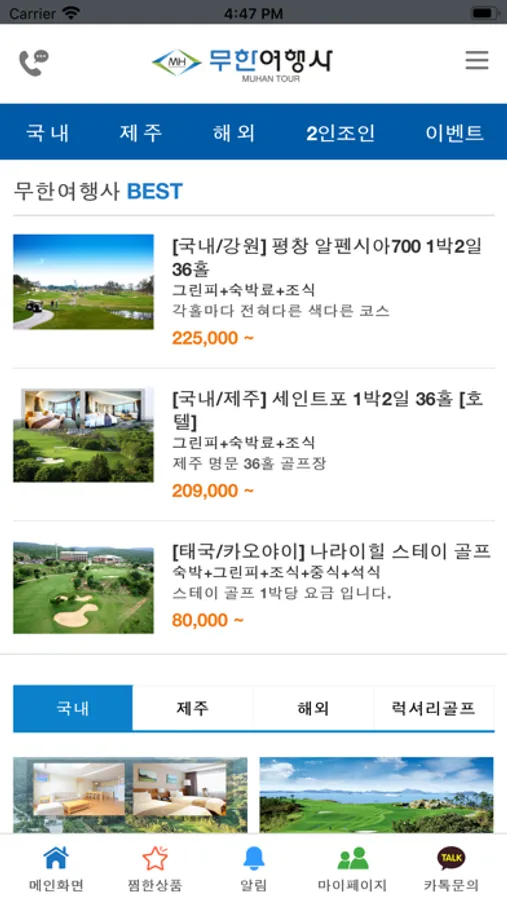 모바일 특가와 함께 떠나는 골프여행, 무한여행사 앱