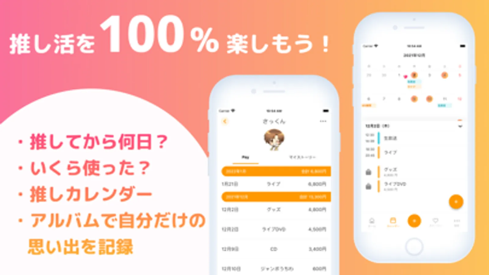 【推しにいくら使ってる?】【推してから何日?】【推し活記録】を管理してSNSでシェアするアプリ