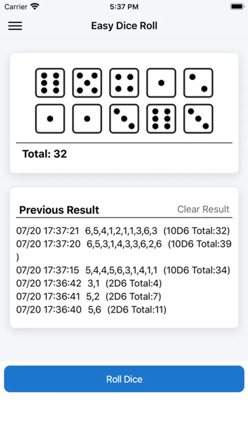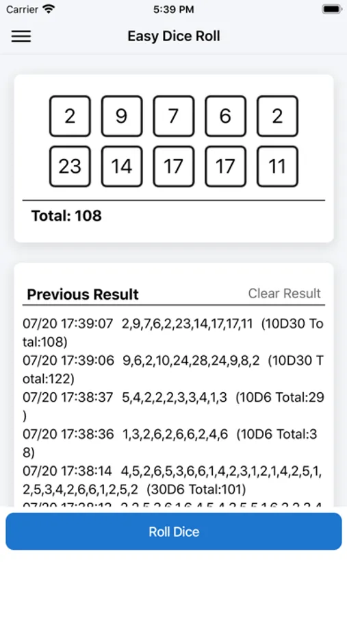 You can freely choose the number of dice from 1 to 30 and the number from 2 to 100 and roll the dice.