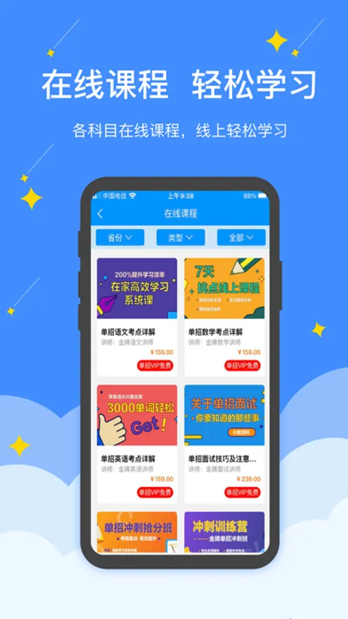 海量视频高质云播:还在为分不清考试的重难点记忆模糊而痛苦么?在这里!直击考点!提供海量在线教学视频,因材施教,高职助手的单招课程中,配有符合单招考试考纲考点的学习视频,随时可查看学习进度。