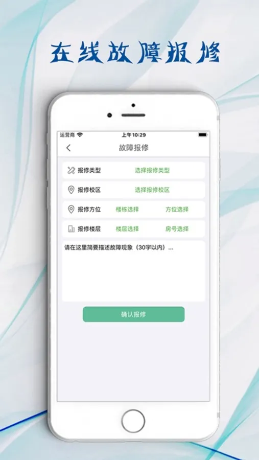 师生可以在app扫码进行连接各种常用的智能硬件,如采用了Wi-Fi的热水水表、多模式洗衣机,在线计费的吹风机。还可以在线报修,工作人员会第一时间收到信息并进行维修。