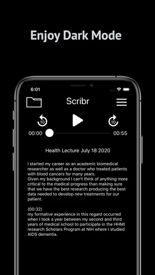 If you're looking for high quality and fast transcribing capabilities, Scribr is the right app for you.