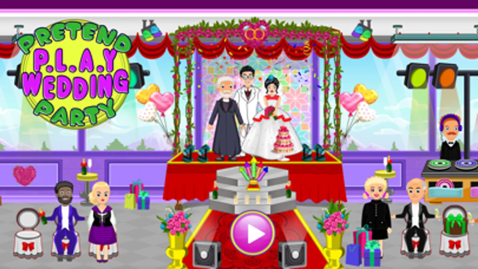 There are going to be many places to explore and have great my pretend wedding town fun in the pretend town royal marriage for you . There is a bride & groom royal family hall where you can eat a feast with the friends and family and have fun! There are multiple shops such as flower bouquet shop, cake shop, dress up and much more with most amazing activities. You can even live a multiple wedding house life in your pretend style while playing this pretend play wedding games!