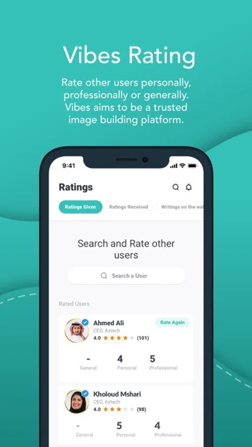 - Vibes is a trusted reputation building application. It allows users to rate others in a structured, yet anonymous way. The rating system is designed to be robust, credible, and lowers any chances of abuse.