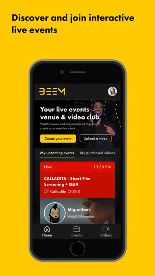 Let's watch movies together! The new Beem app allows you to participate from your phone to the cowatches you bought tickets for: watch movies and documentaries in sync with your favorite influencers and your friends! Chat in video, audio and by messages, contribute to the causes you want to support, react to the movie and to each other messages!