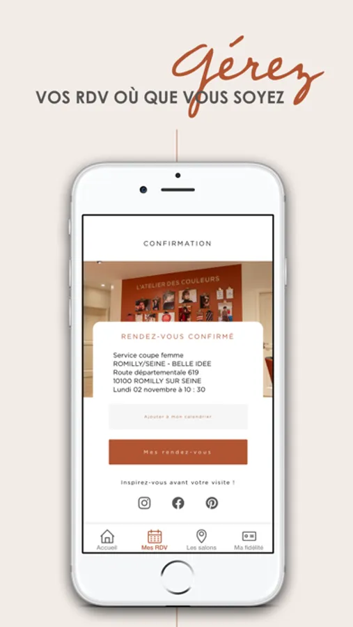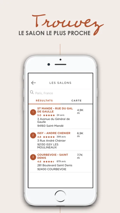 - Trouver le salon le plus proche de chez vous, consulter ses disponibilités et réserver instantanément votre prochain rendez-vous