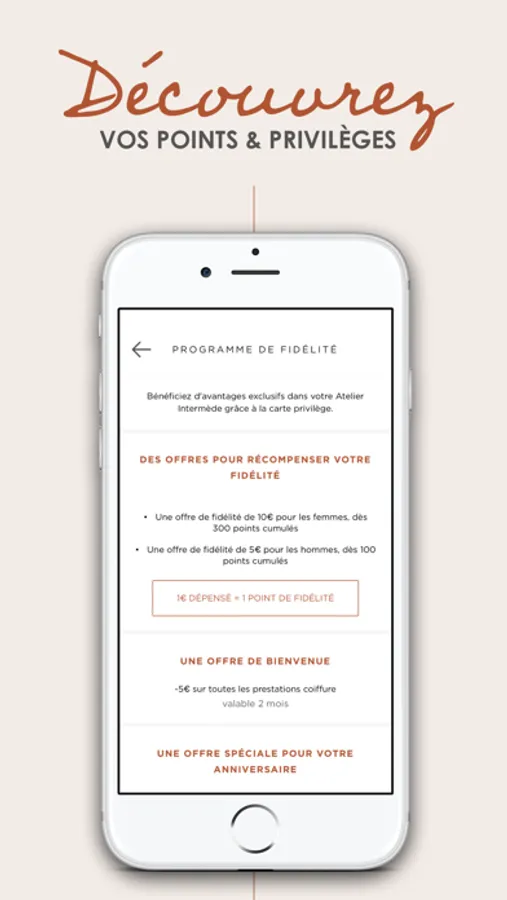 Grâce à l’application Mon Atelier Intermède, vous pouvez dans un seul espace consulter vos rendez-vous et votre compte fidélité. Vous n’êtes pas encore inscrit ? Pas de panique, vous pouvez créer votre compte privilège directement via l’application et ainsi bénéficier d’avantages et d’offres exclusives tout au long de l’année !