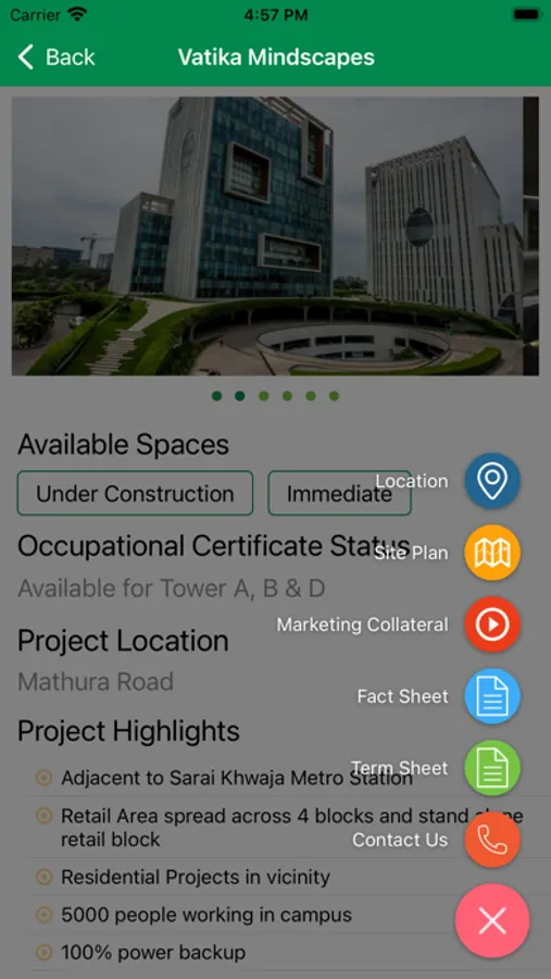 VatikaConnect will provide a comprehensive real time searchable information on Vatika’s Commercial and Retail projects. This app shall provide an easy access to all the projects and information about them. Users can access details about properties including, approximate rentals*, floor plans, images, term sheets etc. The app also allows users to conduct a real time search in the Vatika’s Commercial and Retail spacesinventory. Users can save the short listed properties,send proposals, floor plans etc to prospective clients directly through the app.
