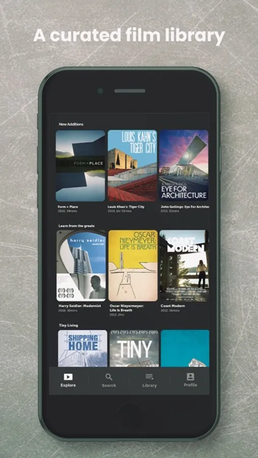 Showcasing award winning feature films, exclusive Shelter Originals, episodic series and shorts, along with dedicated channels such as the Michael Blackwood Architecture Collection, The Design Emotive, 9 Sekunden, Never Too Small, Dwell and green magazine.