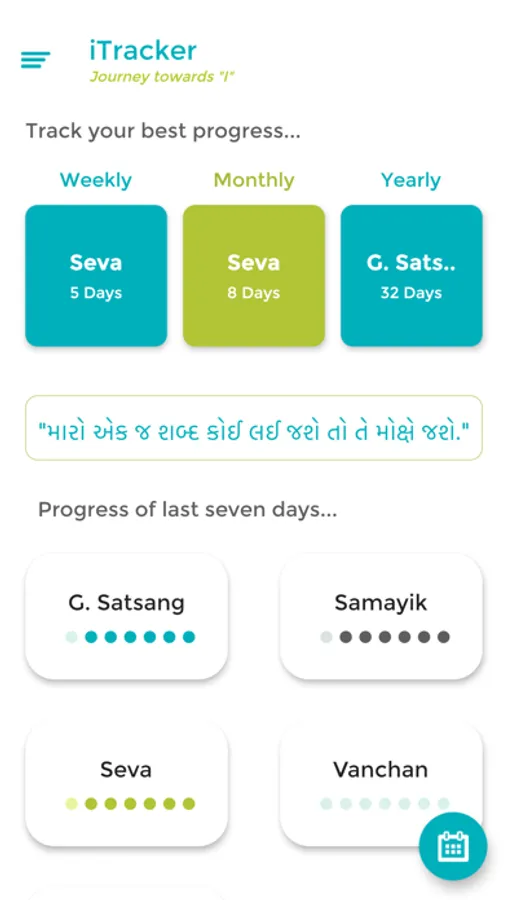 2. Keep track of 5 basic Sadhanas - Vidhi, Vanchan, Satsang, Samayik and Seva.