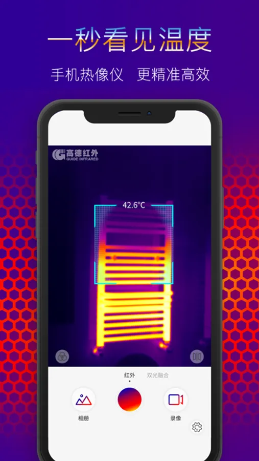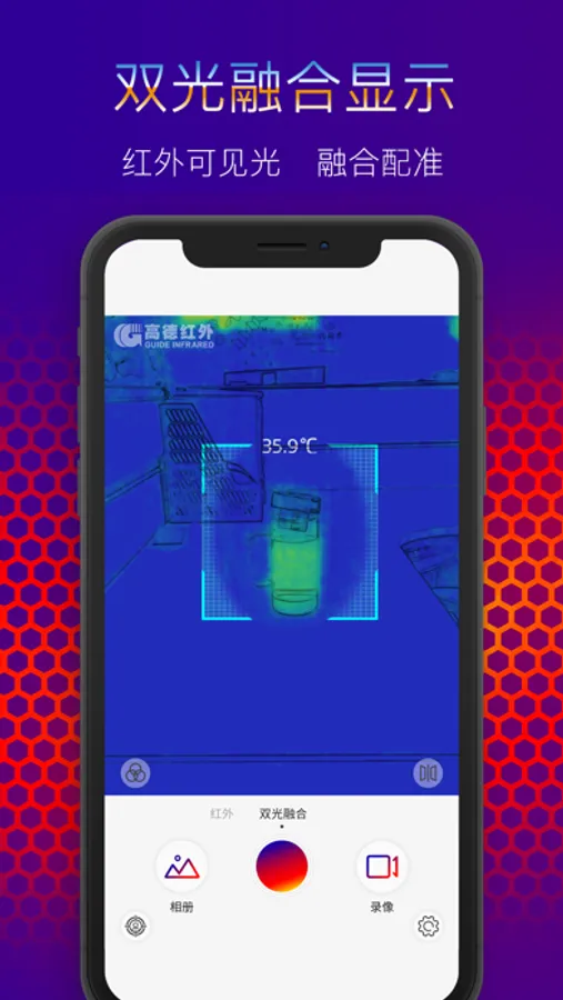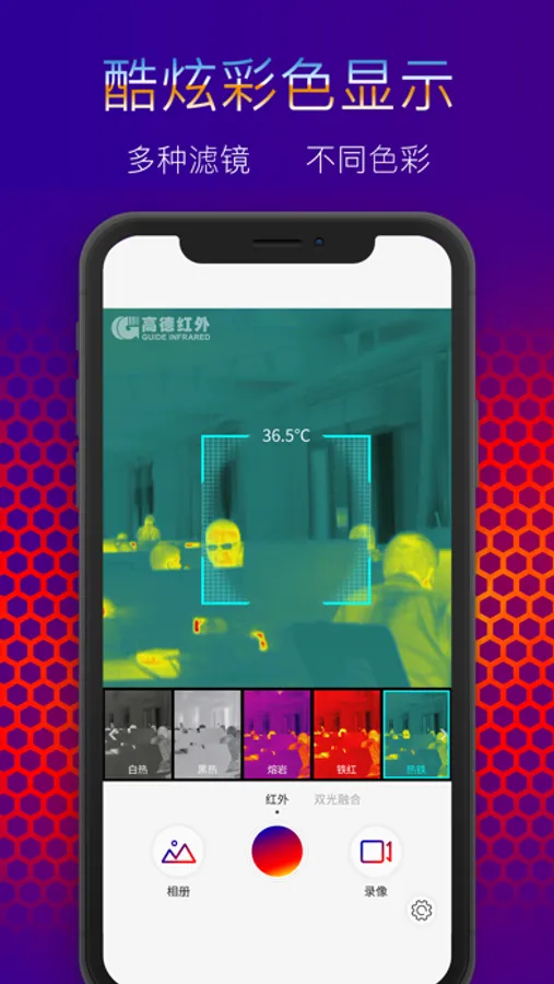MobIR Air H APP拥有媲美专业热像仪的强大功能,能实时测温、切换调色板、拍照、录像、相册、参数设置等功能。您可以使用这款APP记录下生活中的温度!