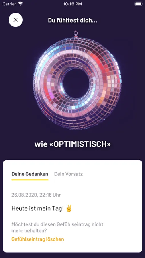 • dein aktuelles Gefühl im App-Tagebuch speichern