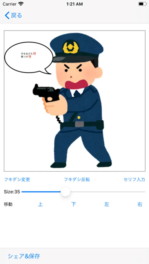 7. 「上下左右」ボタンでフキダシを移動できます。