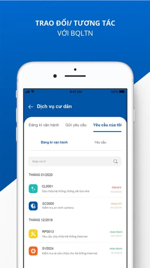 - Gửi yêu cầu có đính kèm hình ảnh đến BQL giúp đơn vị tiếp nhận giải quyết nhanh chóng.
