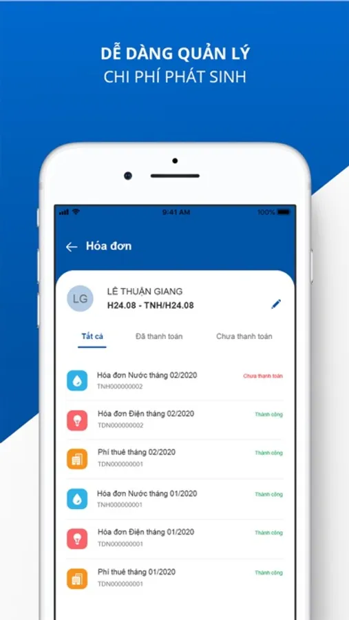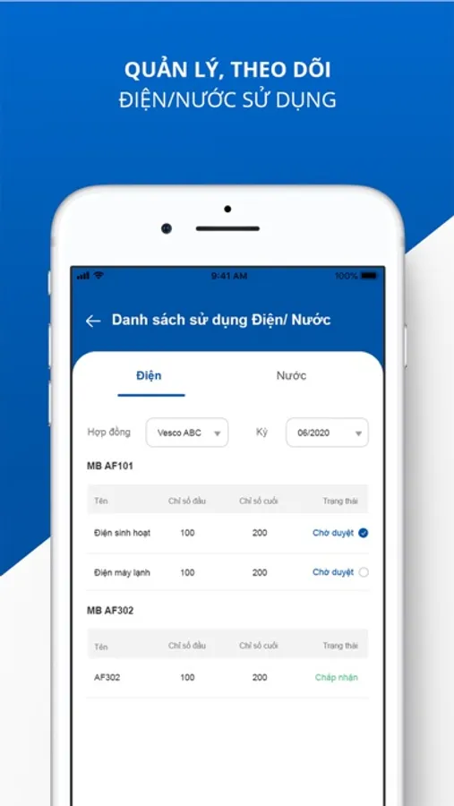 - Lịch sử sử dụng điện/nước