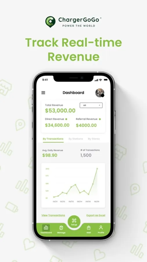 This app is for both ChargerGoGo’s Local (business and venue owners that have purchased a station) and Distribution Hosts (independent station owners) to set up and manage their charging stations. Track the transactions at each station, and know your total income at all times.