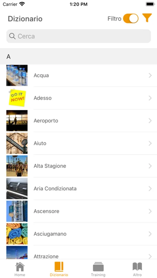 Filtra le parole nel dizionario e formati attraverso una selezione di argomenti rilevanti.