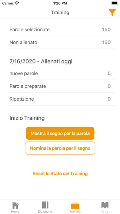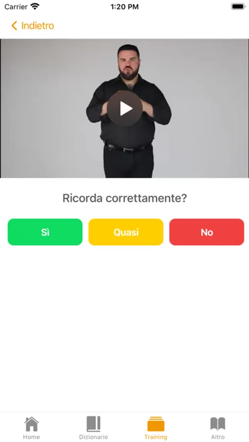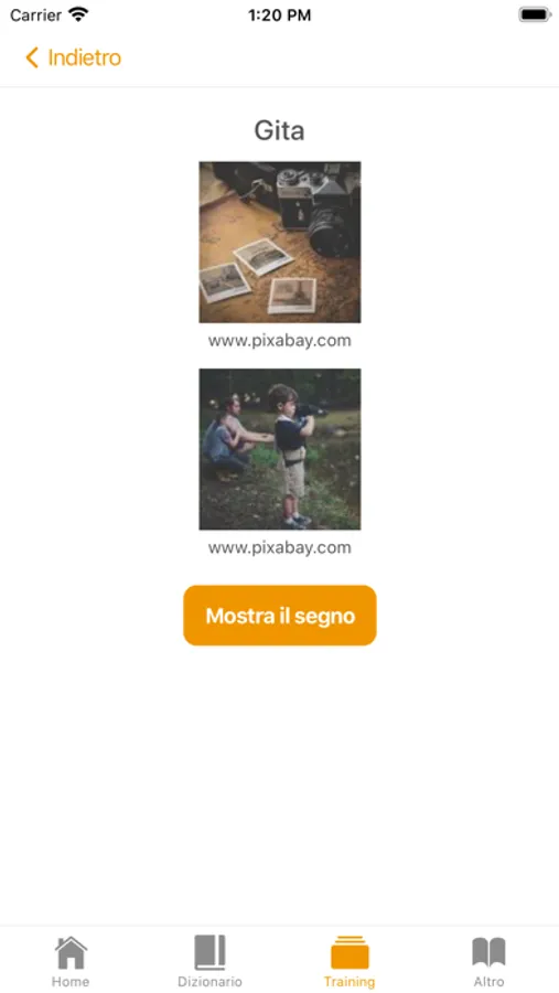 Allenati in parole e segni. Guardali scritti o in lingua sei segni e ricorda la traduzione.