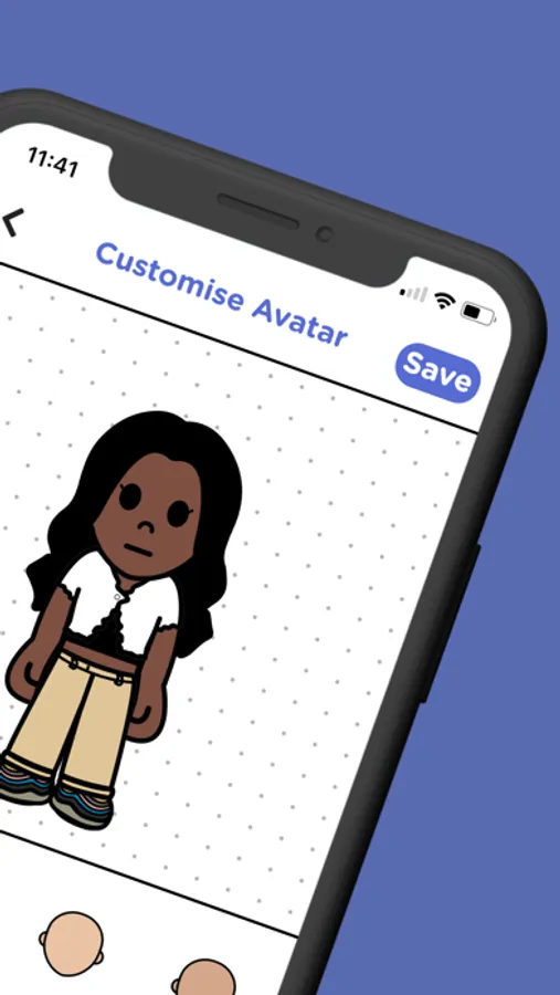 -Choose from a wide selection of clothes and features to customize the avatar to your desire.