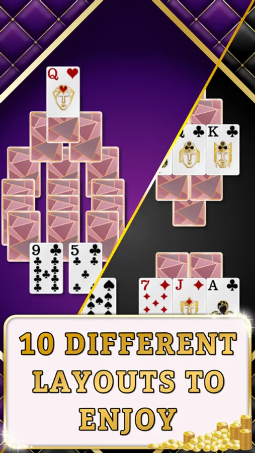 Choose from fifteen different card layouts and eleven different themes from draping palms to champagne bubbles. Opulent art deco inspired minimalist design allows you to play in peace and luxury, with bespoke illustrated cards that glint with gold.