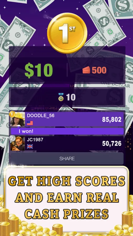 This game is made for Skillz competition platform, perfect for the competitive player. There are leader boards, trophies, real or virtual currency prizes, and a loyalty program that rewards you for playing. When playing head-to-head, both of you solve the same game but it's the player who finishes with the most points who takes it all. Will it be you?