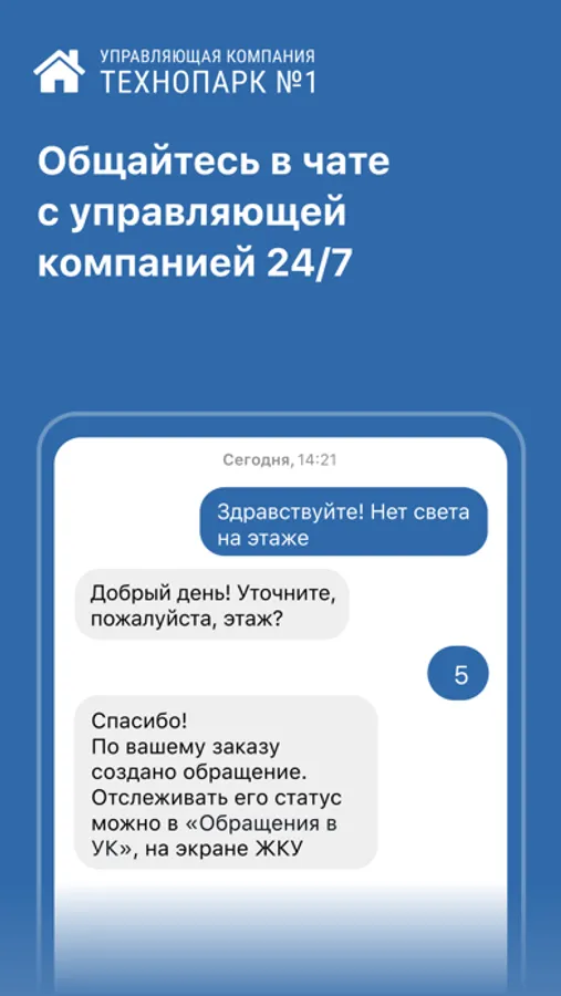 • Общаться в чате с управляющей компанией;