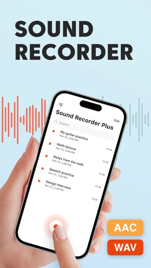 The Sound Recorder Plus supports the AAC and WAV voice recording formats.
