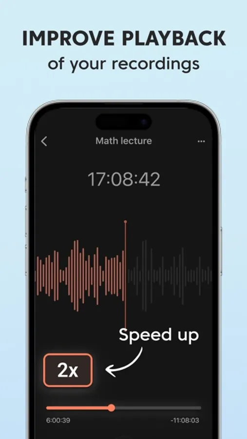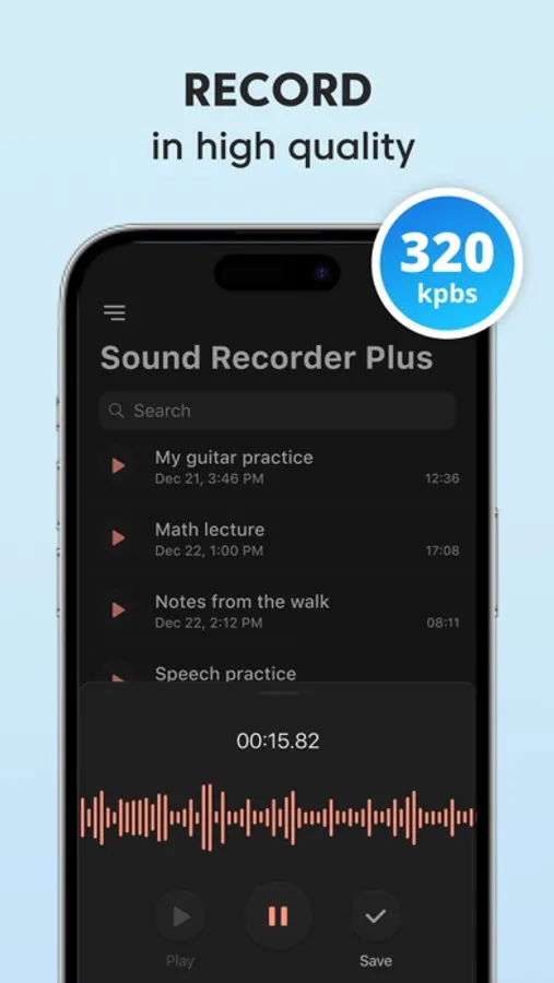 Get the highest grades with the recordings of lectures and seminars in your pocket. Even if the speaker is far and background noise interferes, the microphone configurations in the app ensure the high quality of the audio.