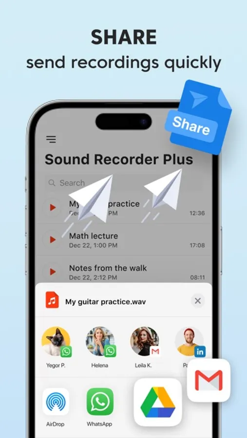Capture melodies before they go out of your mind to share them with the world. The Sound Recorder Plus will perfectly replace your microphone in this situation.