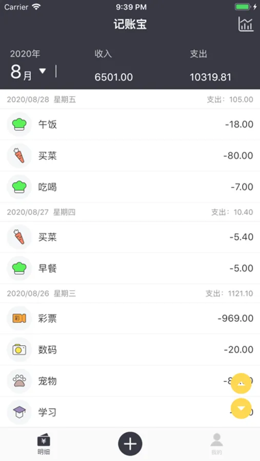 便捷好用的记账软件,账本,账单,生活记账本,适用于旅游记账,旅行记账,生意记账,学生记账,学生账本,亲子账本,装修记账,人情记账,日常记账,家庭账本,随手记账等。再也不担心钱花哪儿了,简洁的记账流程,清晰的图表展示, 让您随时随地掌握资金流向,及时调整支出,一定是您满意的记账app!