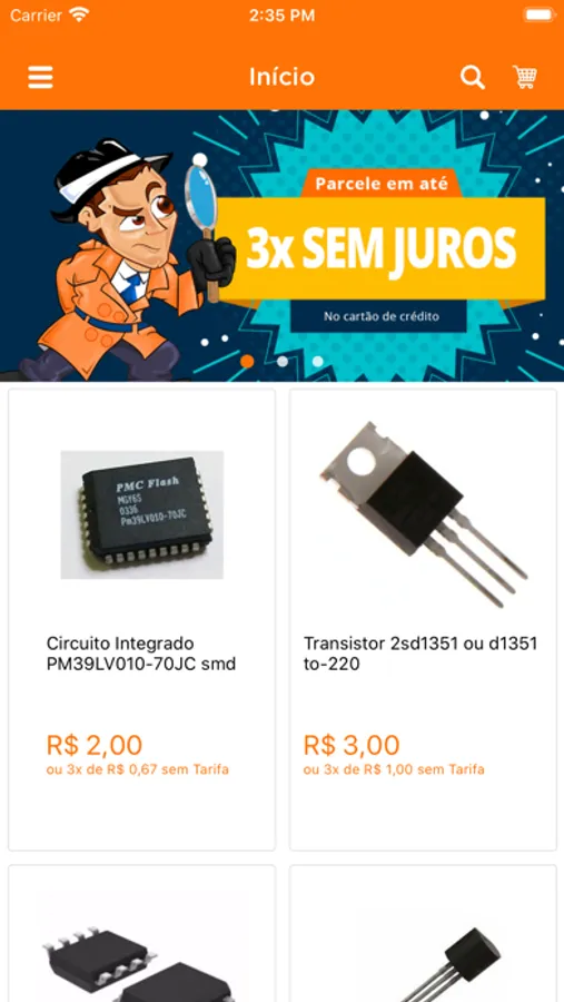 Venda de componentes eletrônicos no atacado e varejo. Compre e receba em casa! Componentes como: Circuitos Integrados, Microcontrolador, Resistor, Capacitor, Transistor, Display, Fusível, Redes resistivas, Suportes, Fontes, Reguladores, Reles, Buchas, Soquetes, Chaves Táctil, Chaves Liga/Desliga, Placas mp3, Placas Fenolites, Led, Caixas Patola e etc...