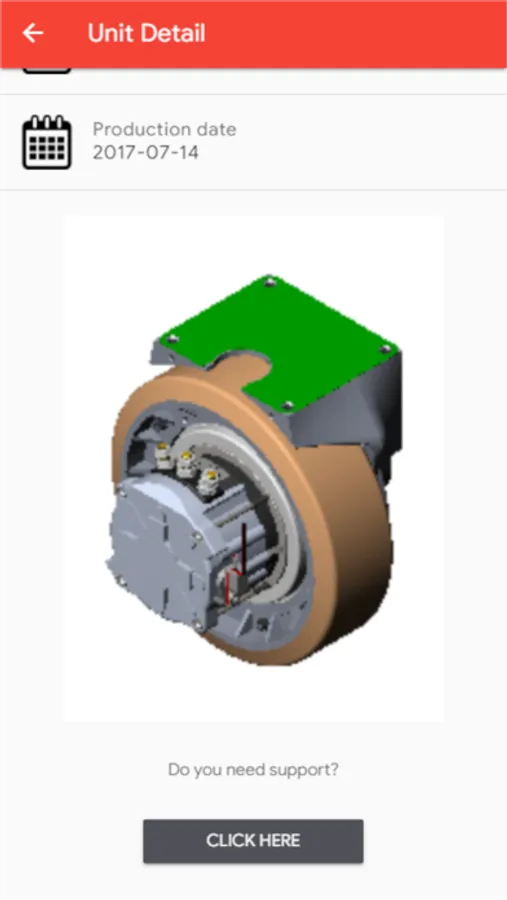 Using the button below the information about the drive wheel unit, you can open a request for support and assistence for your item.