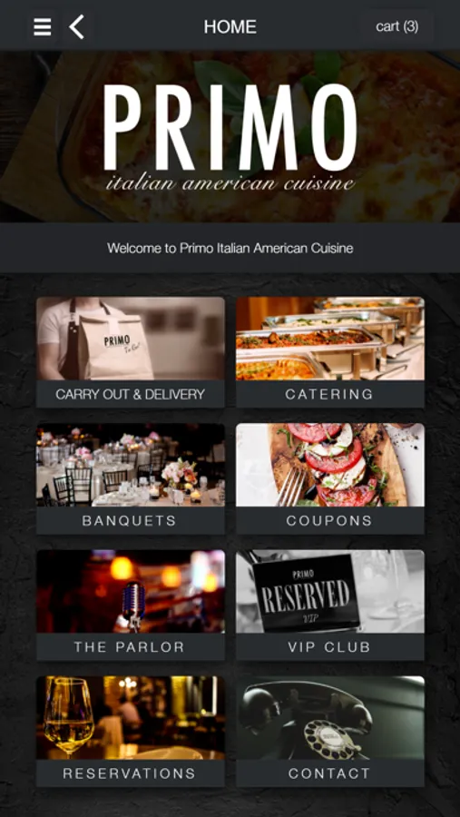 Download today and order from Primo Italian America Cuisine, Lakehouse Restaurant, Fatmans, or Chicago Woodfire Pizza Co.