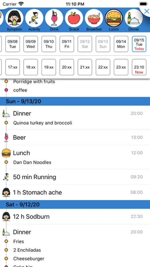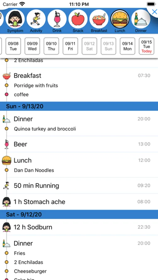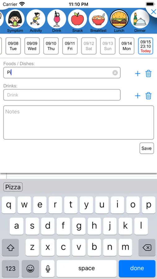 Food Pad is your personal diary to record and keep track of your meals, drinks and symptoms.