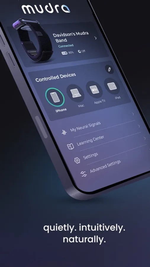 Mudra’s natural and familiar gestures are used for tap to select, pinch to scroll, swipe, hold, and navigate to any area of interest in a relaxed spatial body posture.