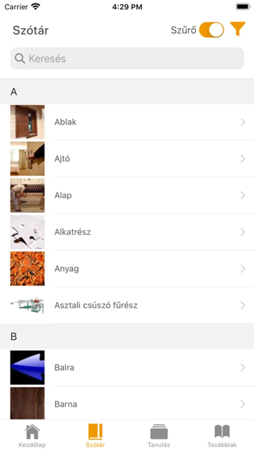 Ebben az alkalmazásban megtalálod az összes kifejezés szószedetét és a szavak jelentését, emellett egy fllashcard alapú rendszer segítségével megtanulhatodaz egyes szavakat jelnyelven, és további hasznos információkhoz is hozzájuthatsz.