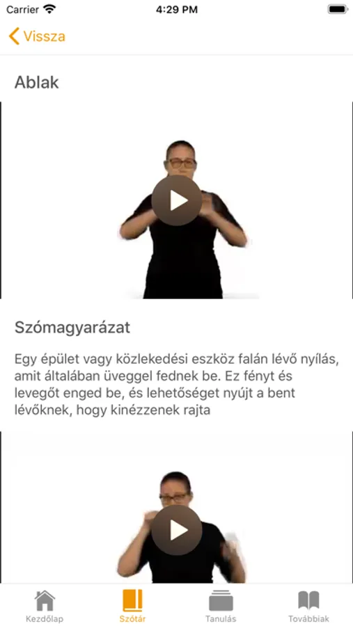 Tanulj új szavakat és jeleket. Nézd meg a kifejezések írott vagy jelelt változatát, és jegyezd meg a fordításait.