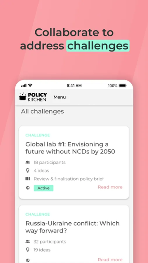 To learn more about the platform, ongoing challenges or the app, please visit the policykitchen.com or contact info@policykitchen.com