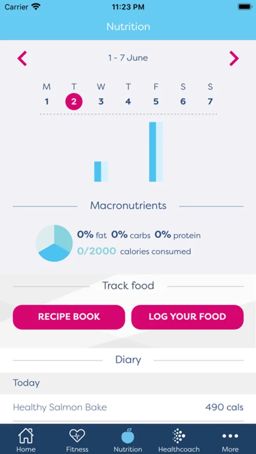 Nutrition: Access your suggested meal options and step by step recipes. Quickly log food and track daily calorie intake.