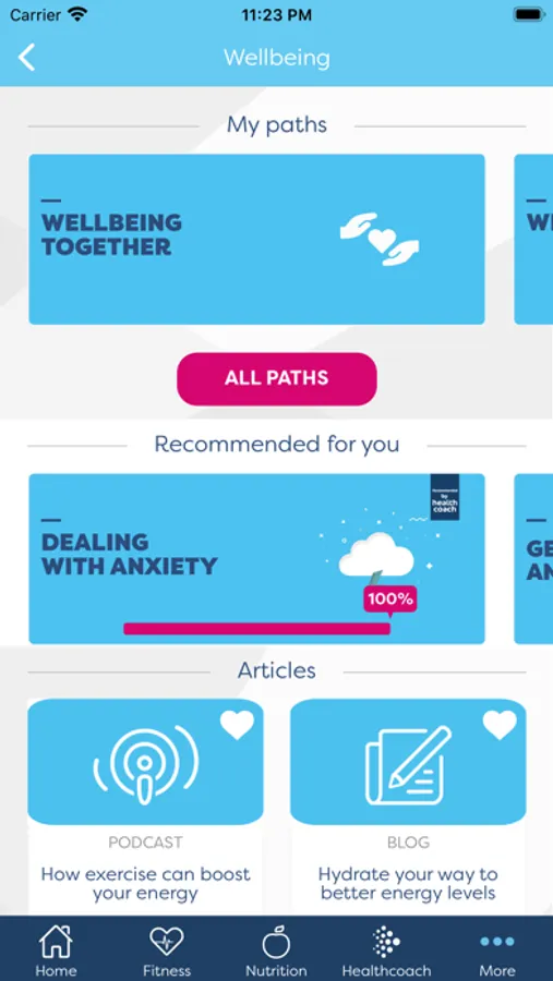 Wellbeing: Enrol in wellbeing courses to improve your physical and mental health. Get access to expert blogs, podcasts and videos as you progress through each course