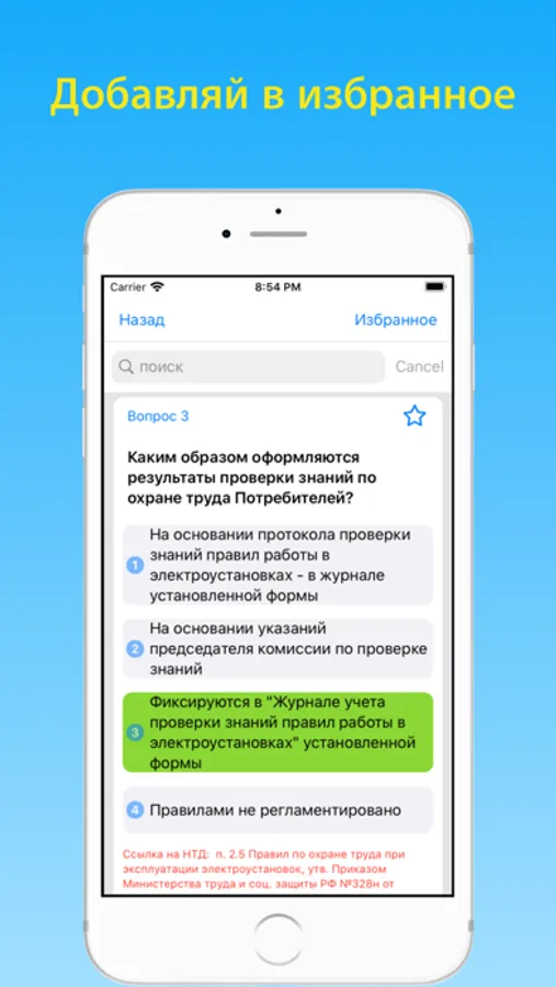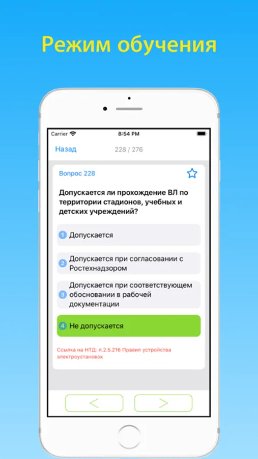 • Подготовка - Позволяет изучить вопросы в текстовом формате с отмеченными правильными ответами;