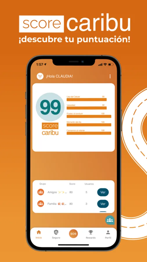 En MyCaribu obtén tu score de conductor y compite con tus amigos armando grupos en la app, si mejoras tus hábitos de conducción y subes tu score, ¡desbloquearás recompensas en tus plataformas favoritas!